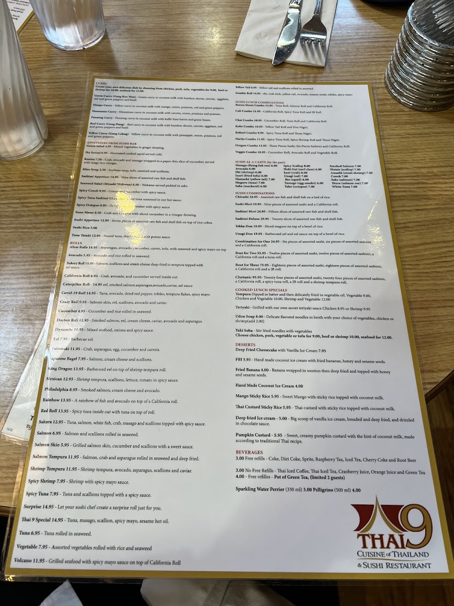 Welcome to Thai 9, a culinary gem located at 11 Brown St, Dayton, OH. This vibrant restaurant offers a delightful exploration of Thai and Japanese flavors, perfect for both lunch and dinner. The menu features an array of enticing options, from the crispy Crab Rangoon to the refreshing Papaya Salad. For soup lovers, the fragrant Coconut Milk Soup and comforting Wonton Soup are standout choices.